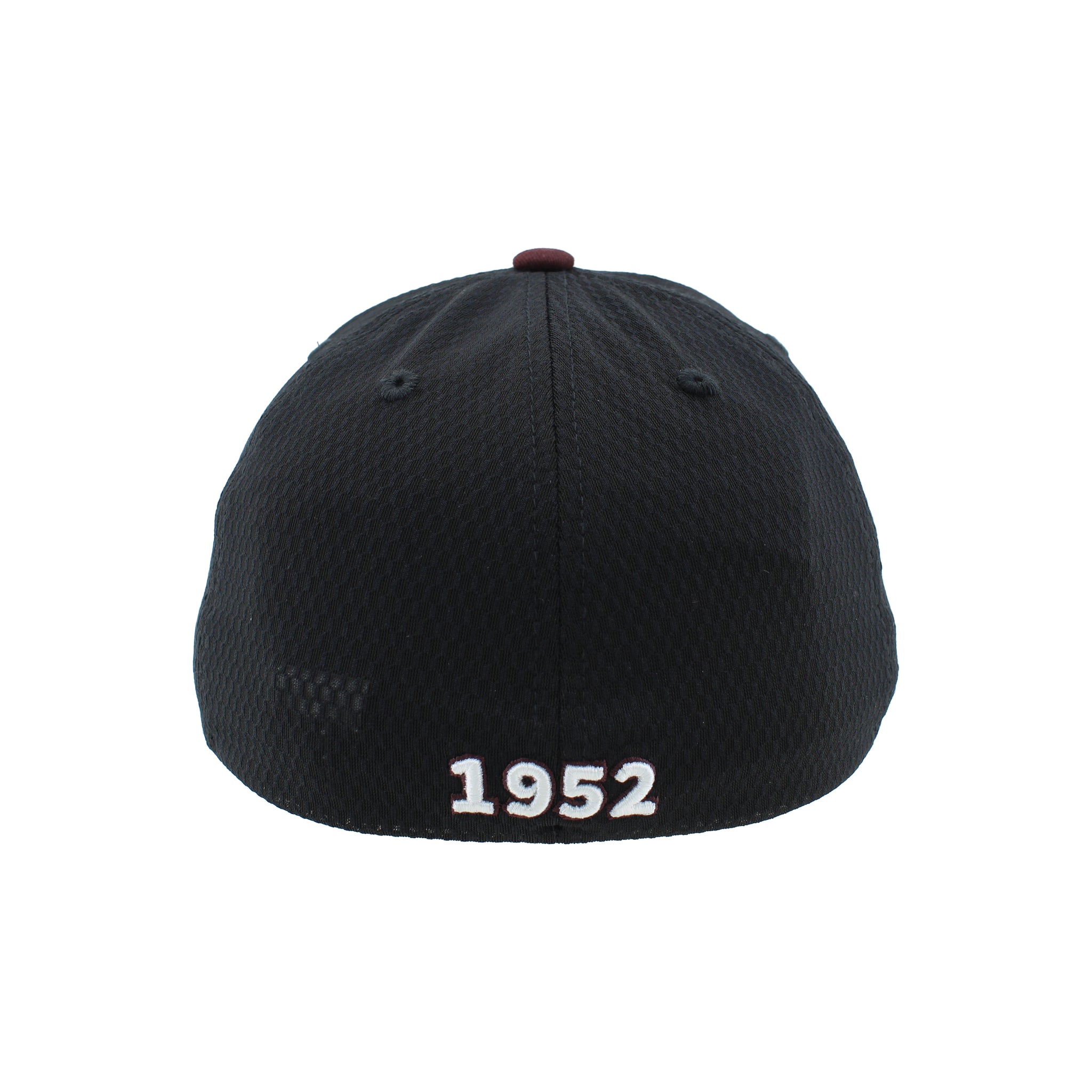 Black charcoal front with black hex mesh. The original Maroon color scheme with 1952 on the back for the year the Komets were established.