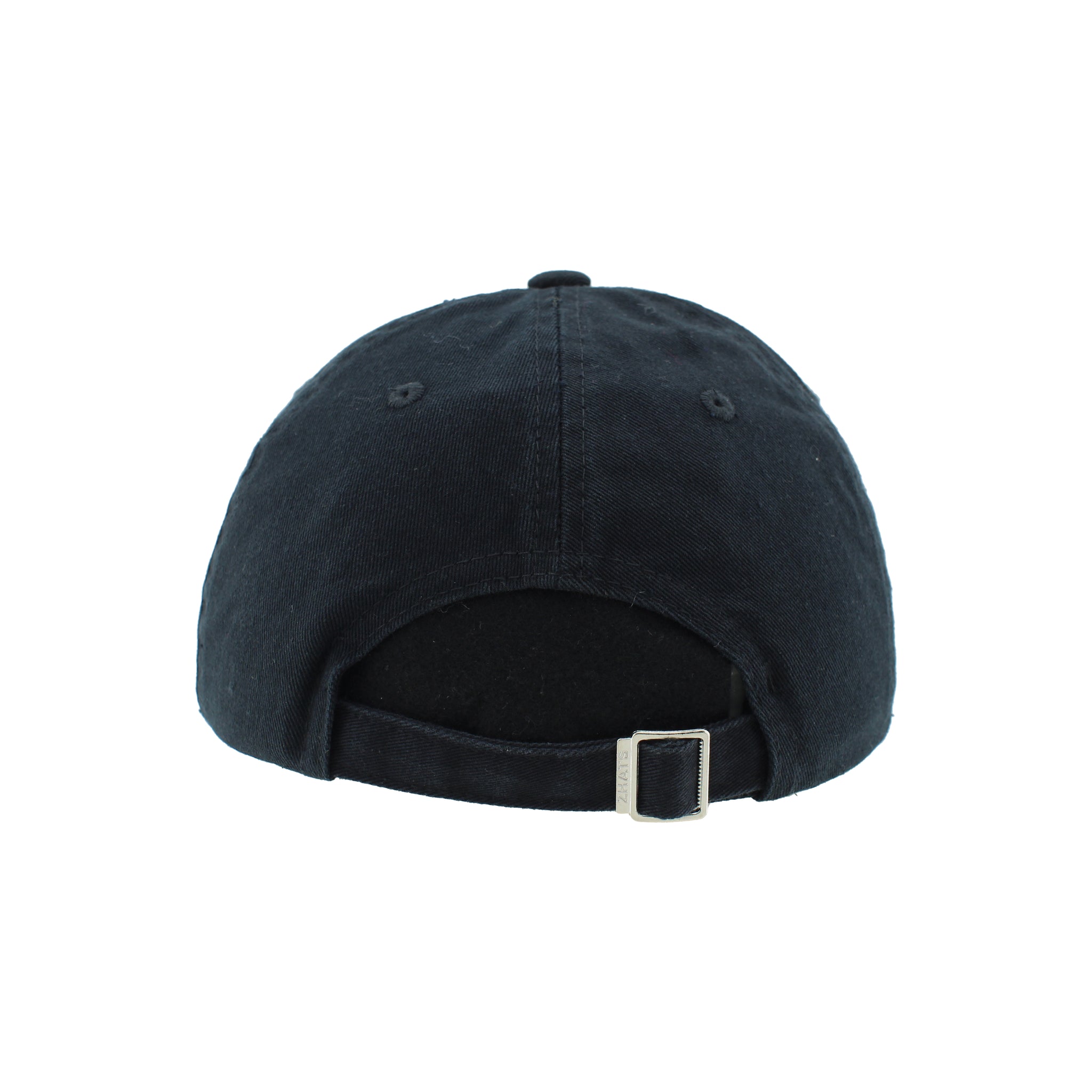 Unstructured womens hat in washed cotton with curved visor. Adjustable back with nickle self strap