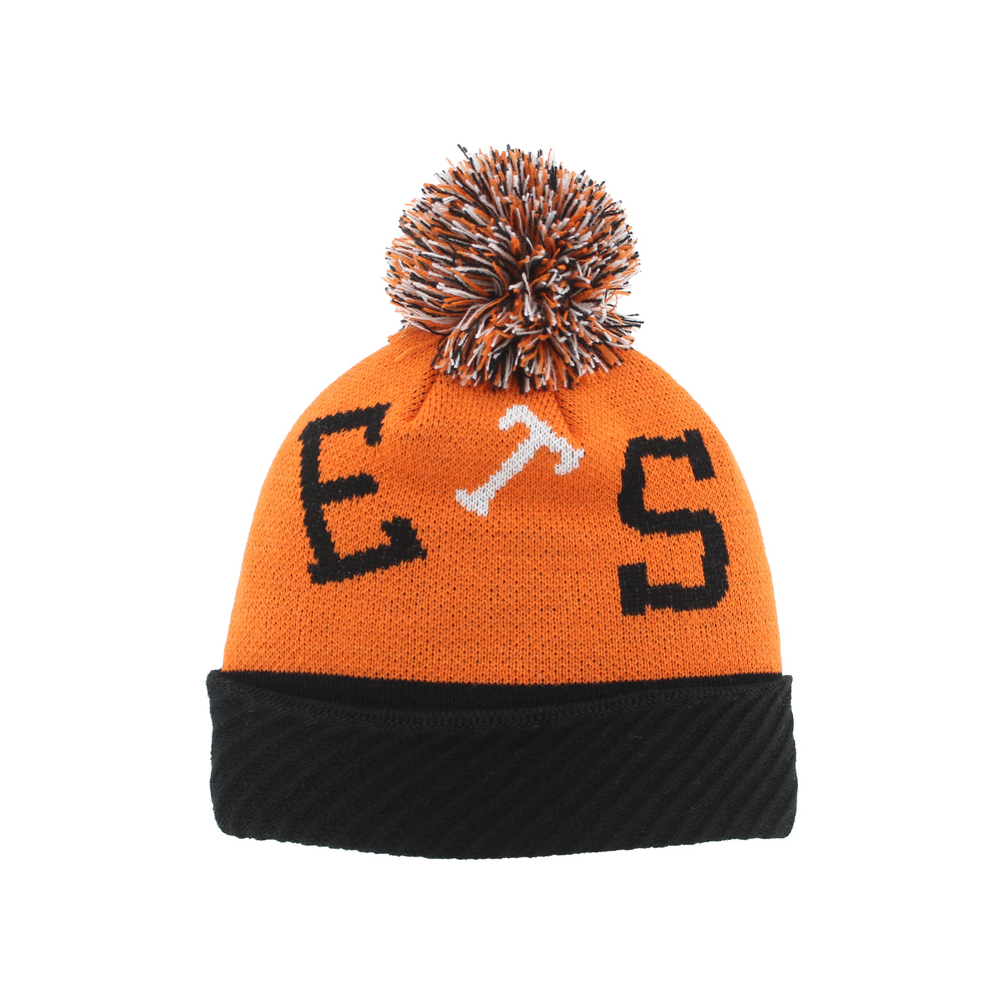 Zephyr Brand. Two tone youth crown with diagonal ribbed cuff and pom.